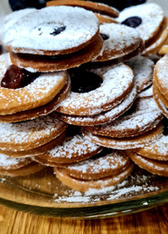 מניחים את העוגייה עם אבקת הסוכר מעל הריבה.